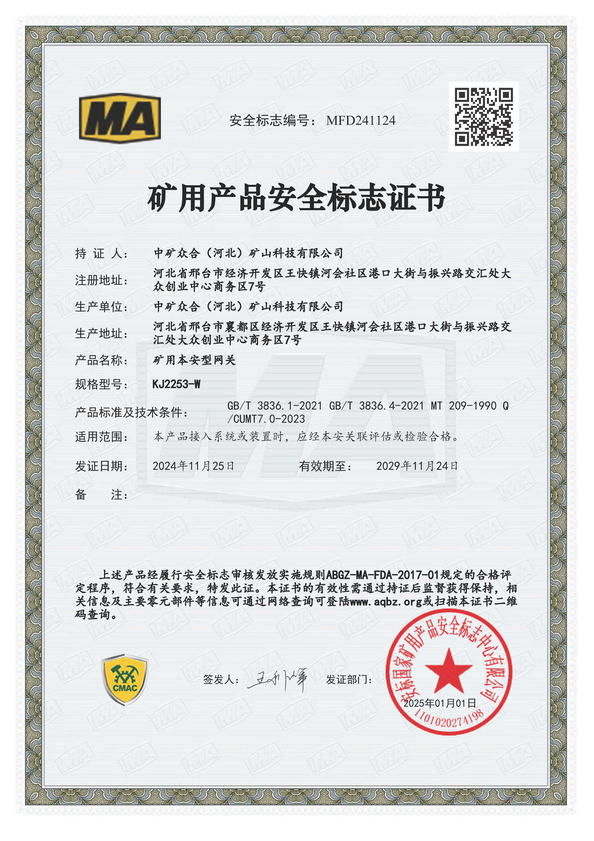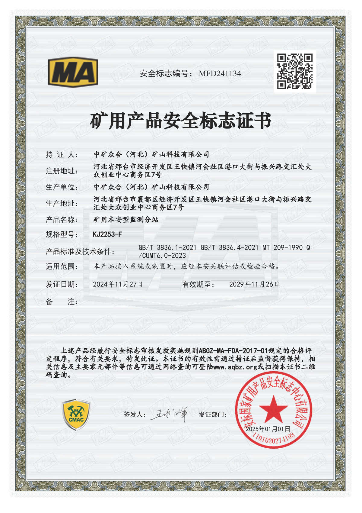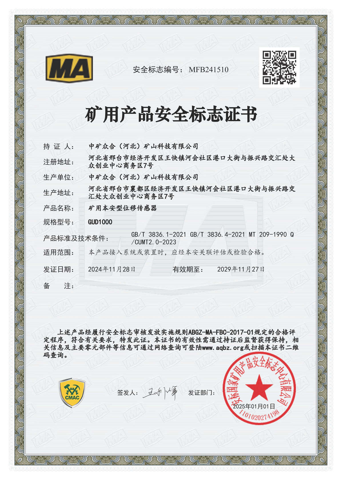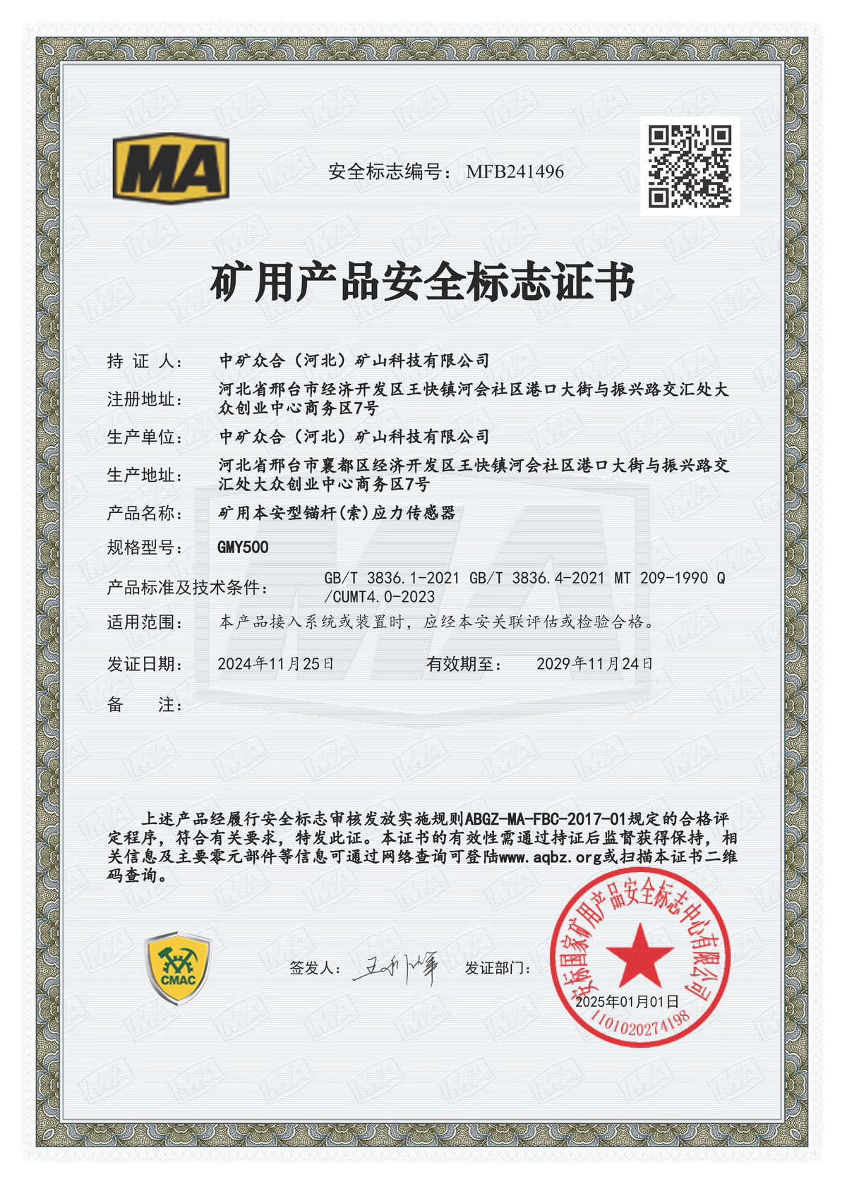 安全标志证书