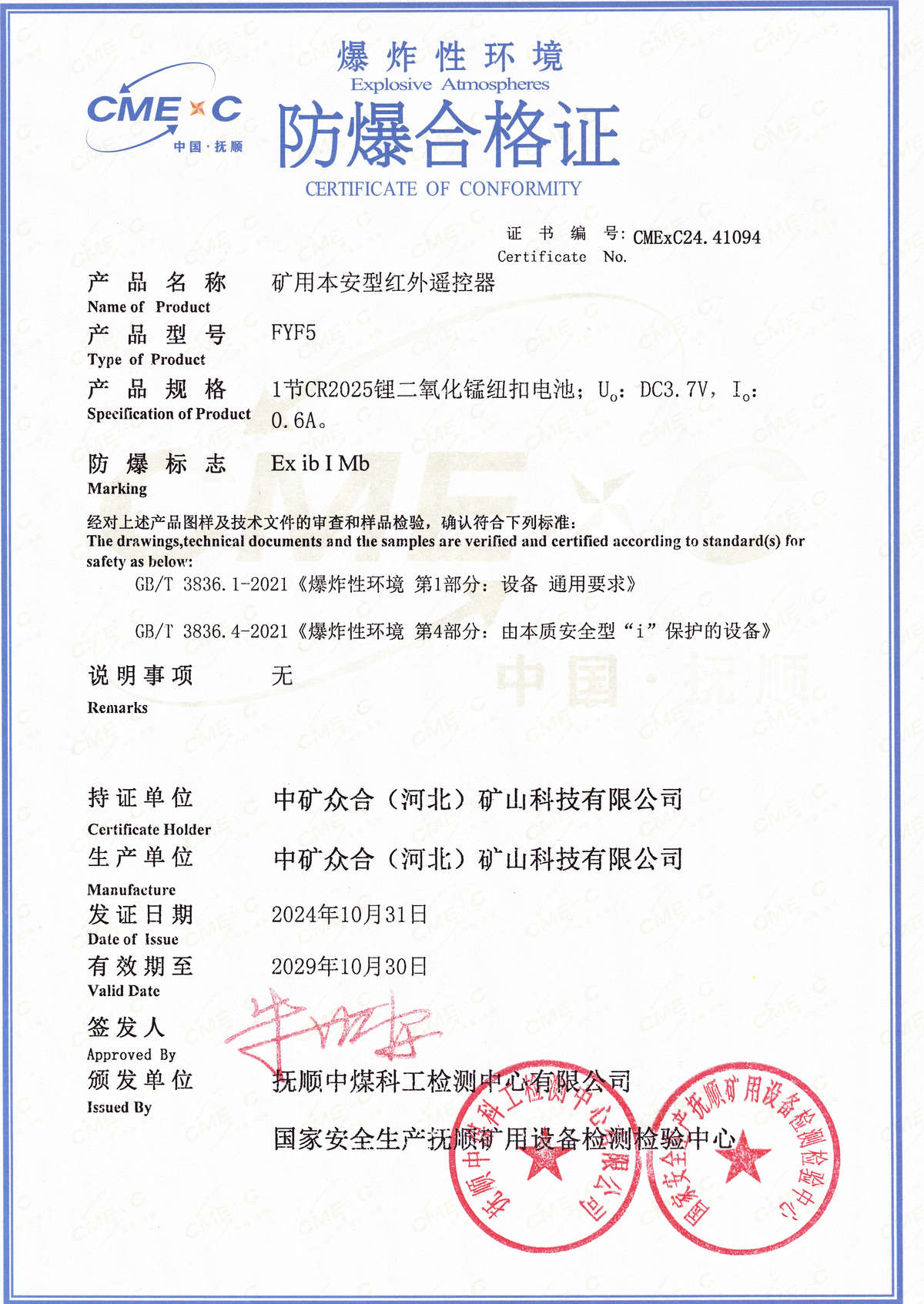防爆证书